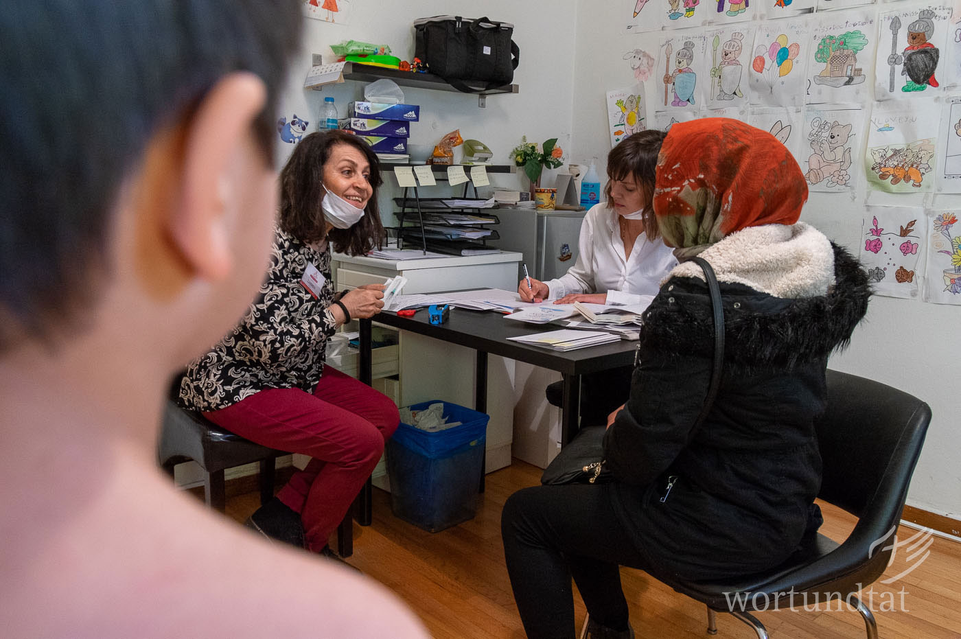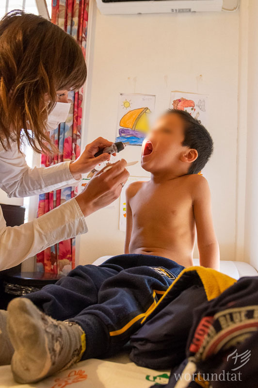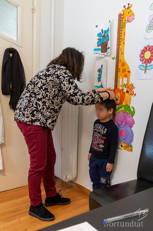 Im Zentrum für Flüchtlingsfrauen und deren Kinder praktiziert wochentäglich für mehrere Stunden eine Kinderärztin. Zu ihr kommen Mütter mit ihren Kindern, die vorab einen termin verabredet haben. Die Wartezeiten sind kurz und es ist immer eine Dolmetscherin anwesend.