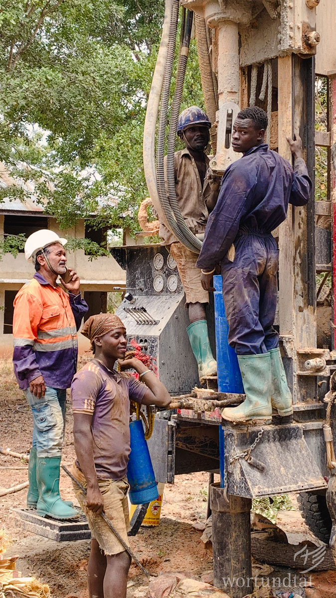 Auf dem ausgedehnten KIUMA-Gelände wurden in den vergangenen Wochen Löcher für drei neue Brunnen gebohrt. Die zwei bisher genutzten Bohrlöcher hatten sich im Laufe der Jahre als zu klein erwiesen. Immer wieder hatte es dadurch in der Vergangenheit Probleme bei der Wasserversorgung gegeben. Die neuen Löcher haben einen größeren Durchmesser. Sie sorgen künftig dafür, dass die etwa 1.800 Menschen, die auf dem Gelände leben und arbeiten, und einige hundert Bewohnerinnen und Bewohner aus dem benachbarten Dorf für die kommenden Jahre sicheren Zugang zu Wasser haben. Etwas abgelegen von den Wohn- und Nutzgebäuden wurde ein dritter Brunnen angelegt. Das dort geförderte Wasser werden wir für ein Landwirtschaftsprojekt nutzen, das in den kommenden Monaten starten soll. Wir werden bald darüber berichten.